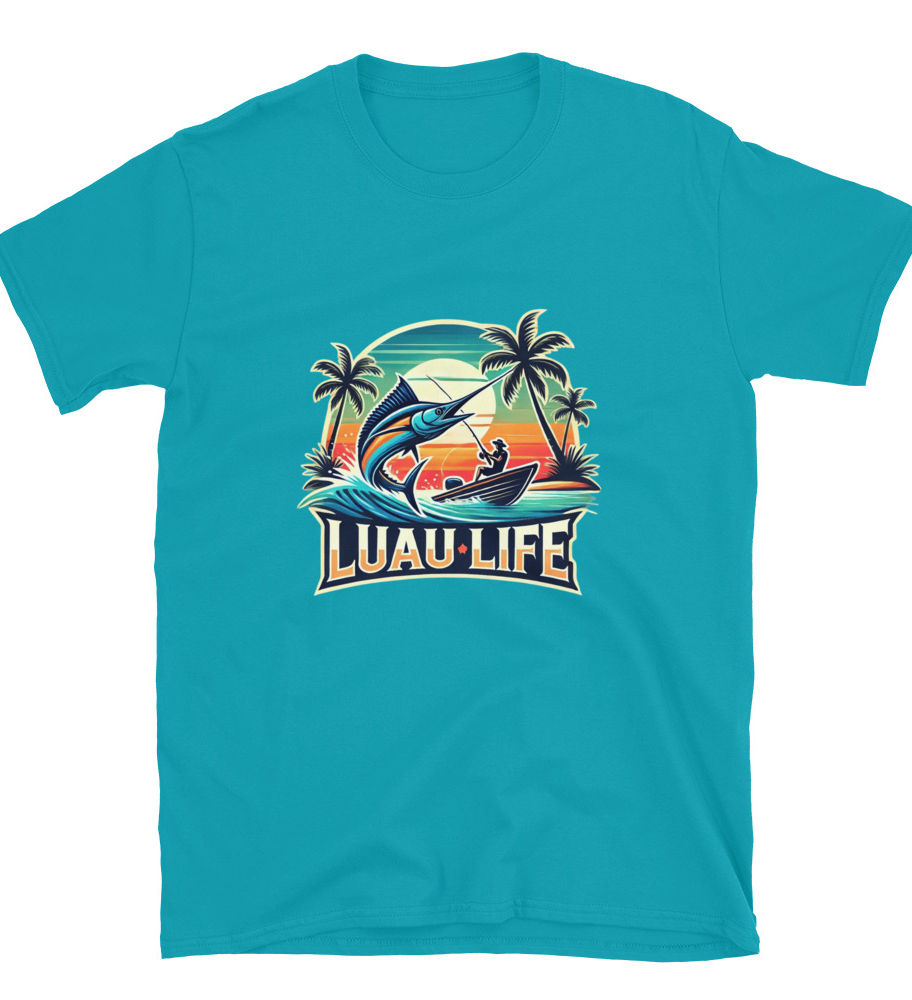 Embrace the spirit of island adventure with our Luau Life Marlin Sunset Tee. Featuring a bold, vintage-style design of a fisherman battling a marlin against a vibrant tropical sunset, this shirt captures the thrill of the ocean and the laid-back vibe of luau living. Palm trees, rolling waves, and rich sunset hues bring paradise to life. Perfect for beach lovers, anglers, or anyone who lives for sun, sea, and freedom.