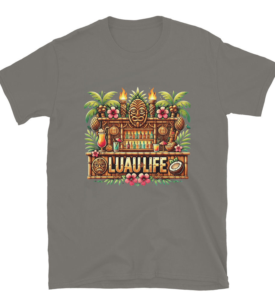 Step into island vibes with the Luau Life Tiki Bar Paradise design. Bursting with tropical flair, this artwork features a vibrant tiki bar surrounded by torches, cocktails, coconuts, and lush palm trees. Centered around a bold tribal mask and bamboo textures, it captures the essence of beachside chill and aloha spirit. Perfect for those who live for sunny days, good vibes, and island drinks. Whether your beach-bound or dreaming of paradise, this design brings the luau to you. Embrace the tiki life—Luau Lifestyle!