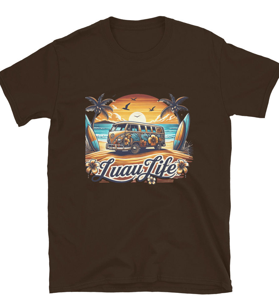 Embrace the ultimate beachside adventure with the Surf & Sun Roadtrip - The LuauLife Collection! This vibrant design captures the free-spirited essence of tropical travel, featuring a retro-style van decorated with lush floral patterns, surrounded by swaying palm trees, surfboards, and a stunning sunset over the ocean. Birds gliding above complete the serene, breezy atmosphere. The bold “LuauLife” typography adds a stylish, laid-back touch, making this design perfect for beach lovers, surfers, and free spirits alike. Whether your chasing waves or just craving island vibes, this design lets you carry paradise with you everywhere. Ideal for T-shirts, hoodies, mugs, and more.